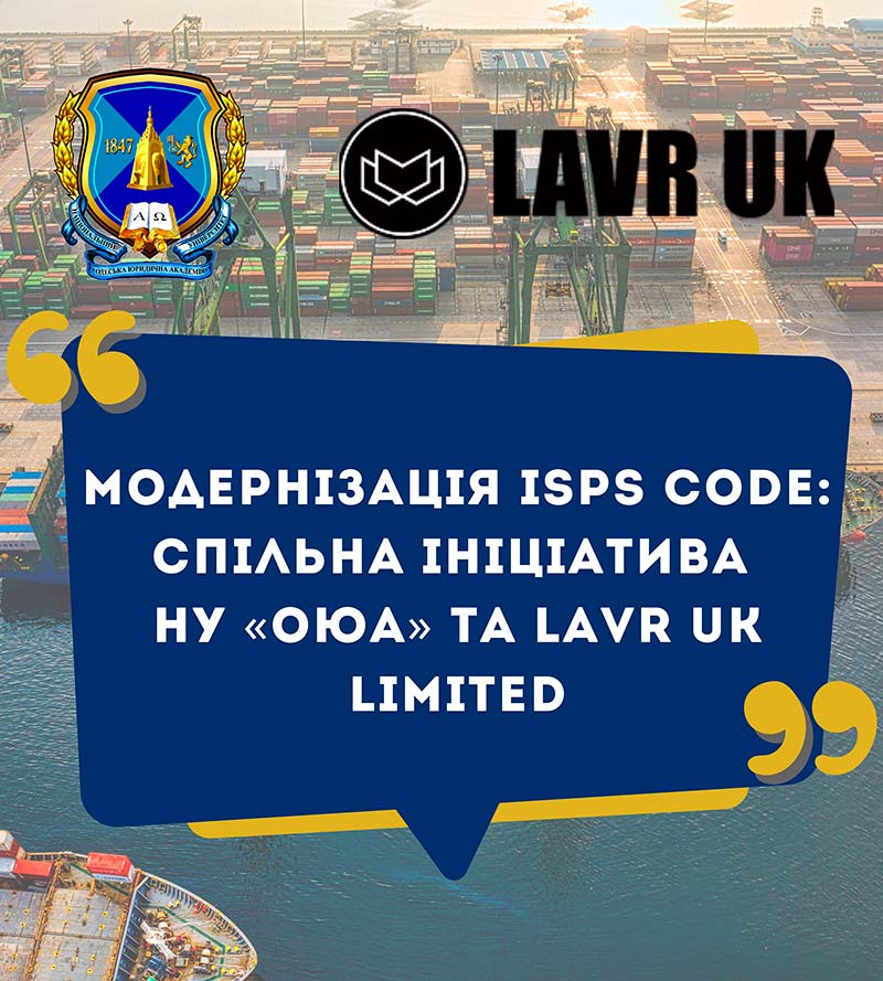 At the initiative of University President Sergiy Kivalov, a Memorandum of Understanding was signed between NU OLA and the UK-based international defense company LAVR UK LIMITED. The memorandum was signed by Professor Oleg Todoshchak, rector of the NU OLA, and Russell Colson, director of LAVR UK LIMITED. The two parties agreed to collaborate on the project "Proposal for Institutional Review and Modernization of the ISPS Code in Light of Emerging Maritime Threats."