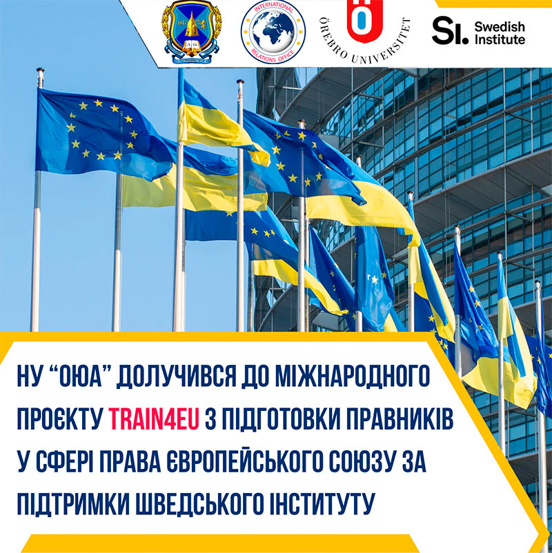National University “Odesa Law Academy” has joined the international project “Training Legal Professionals in EU Law for Ukraine’s EU Integration”, which has received funding from the Swedish Institute (Svenska institutet).