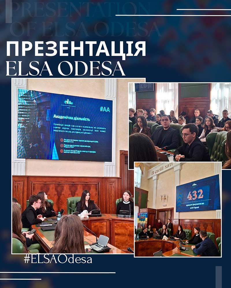 On March 12, a presentation of ELSA Odesa for university students took place in the Meeting Hall of the Academic Council of the National University “Odesa Law Academy”.